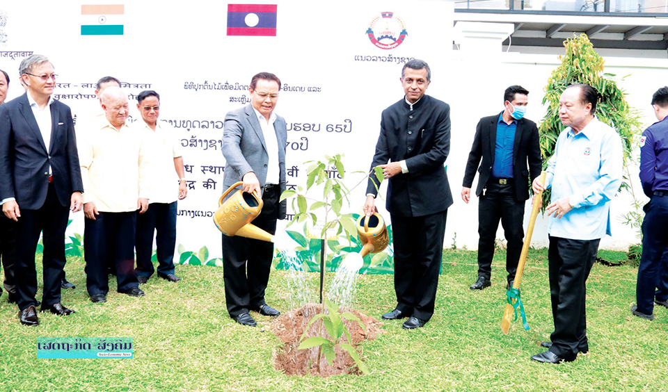 ສູນກາງແນວລາວສ້າງຊາດ (ສນຊ) ຮ່ວມກັບສະຖານທູດອິນເດຍຈັດພິທີປູກຕົ້ນໄມ້ເພື່ອສະເຫຼີມສະຫຼອງວັນສ້າງຕັ້ງສາຍພົວພັນການທູດລາວ-ອິນເດຍ ຄົບຮອບ 65 ປີ ຂຶ້ນຢູ່ສຳນັກງານສູນກາງແນວລາວສ້າງຊາດເມື່ອບໍ່ດົນຜ່ານມານີ້