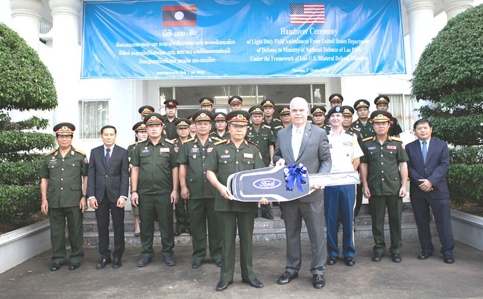 ໃນວັນທີ 1 ຕຸລາ, ທີ່ກະຊວງປ້ອງກັນປະເທດ, ທ່ານ ປອ ປີເຕີ ເຮມ໋ອນ, ເອກອັກຄະລັດຖະທູດສະຫະລັດອາເມລິກາປະຈຳ ສປປ ລາວ ໄດ້ຕາງໜ້າມອບລົດແພດພາກສະໜາມ (FordEverest) ຈໍານວນ 9 ຄັນ ໃຫ້ແກ່ກະຊວງປ້ອງກັນປະເທດຊຶ່ງຕາງໜ້າຮັບໂດຍທ່ານ ພົນຕີ ແອສະໄໝ ເລືອງວັນໄຊ,