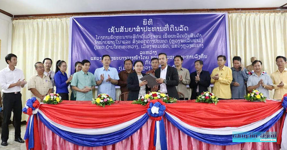 ພິທີເຊັນສັນຍາສໍາປະທານທີ່ດິນລັດຢູ່ບ້ານໂຄກສະຫວ່າງ ເມືອງຈອມເພັດ ແຂວງຫຼວງພະບາງຂອງກຸ່ມບໍລິສັດ ຫຼວງຈະເລີນຟາມ ຈັດຂຶ້ນວັນທີ 29 ກັນຍາ 2020