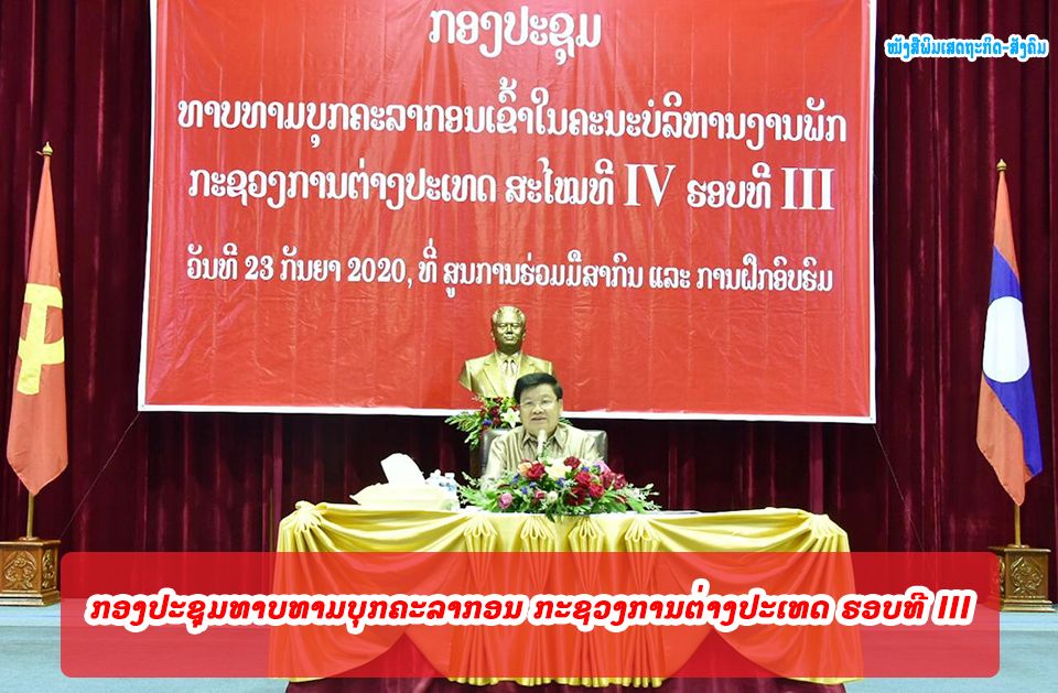 ໃນວັນທີ 23 ກັນຍາ 2020, ທີ່ສູນຝຶກອົບຮົມ ແລະ ການຮ່ວມມືສາກົນ (ICTC) ຫຼັກ 5, ນະຄອນຫຼວງວຽງຈັນ, ກະຊວງການຕ່າງປະເທດໄດ້ຈັດກອງປະຊຸມທາບທາມບຸກຄະລາກອນເພື່ອສະໝັກເລືອກຕັ້ງເປັນຄະນະບໍລິຫານງານພັກກະຊວງການຕ່າງປະເທດສະໄໝທີ IV ຮອບທີ III,