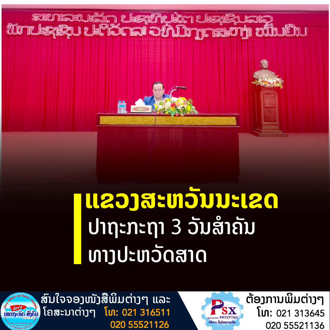 ໃນວັນທີ 16 ມິຖຸນາ 2022 ຄະນະໂຄສະນາອົບຮົມແຂວງສະຫວັນນະເຂດ ໄດ້ຈັດພິທີເຜີຍແຜ່ເອກະສານ 3 ວັນ ປະຫວັດສາດສໍາຄັນ ຄື: ວັນເກີດທ່ານ ແອຣເສໂຕ ເຈ ເກວາຣາ ຄົບຮອບ 94 ປີ(14/6/1928-14/6/2022),
