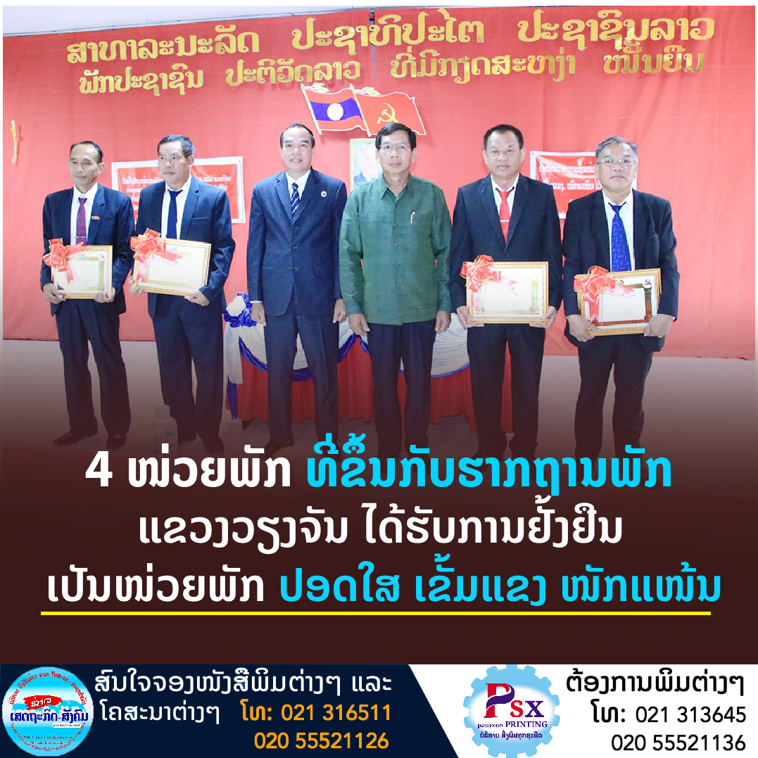 ພິທີມອບ-ຮັຍໃບຢັ້ງຢືນ ໜ່ວຍພັກ ປອດໃສ ເຂັ້ມແຂງ ໜັກແໜ້ນ ໃຫ້ໜ່ວຍພັກ ບໍລິຫານ, ສັງຄົມສົງເຄາະ, ປະກັນສັງຄົມ ແລະໜ່ວຍພັກອົງການກາແດງທີ່ຂຶ້ນກັບຮາກຖານພັກພະແນກແຮງງານ ແລະ ສະຫວັດດີການສັງຄົມ ແຂວງວຽງຈັນ ໄດ້ຈັດຂຶ້ນໃນວັນທີ 29 ມິຖຸນາ 2022