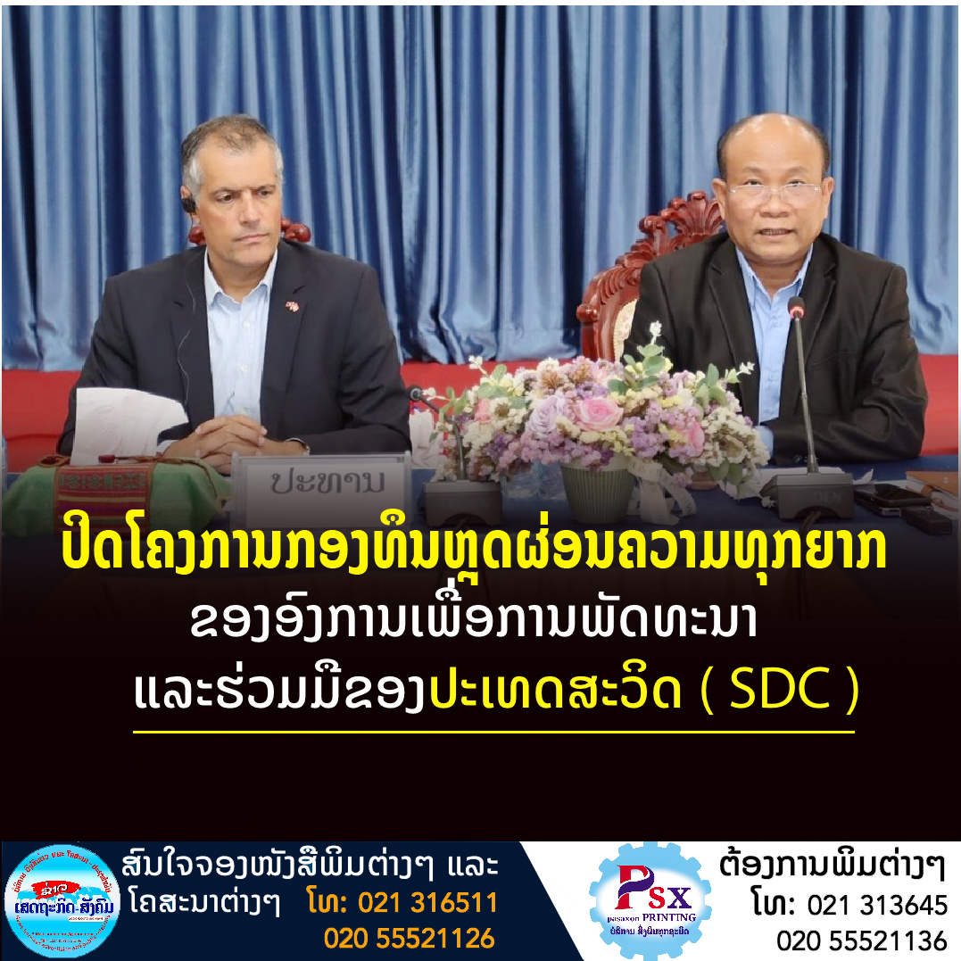 ກອງປະຊຸມສະຫຼບປິດການຊ່ວຍເຫຼືອໂຄງການກອງທຶນຫຼຸດຜ່ອນຄວາມທຸກຍາກ ຫຼື ທລຍ ຂອງອົງການເພື່ອການພັດທະນາ ແລະຮ່ວມມືຂອງປະເທດສະວິດ ຫຼື SDC ຈັດຂຶ້ນ ໃນວັນທີ 16 ມິຖຸນາ 2022 ທີ່ຫ້ອງການພັດທະນາຊົນນະບົດ,