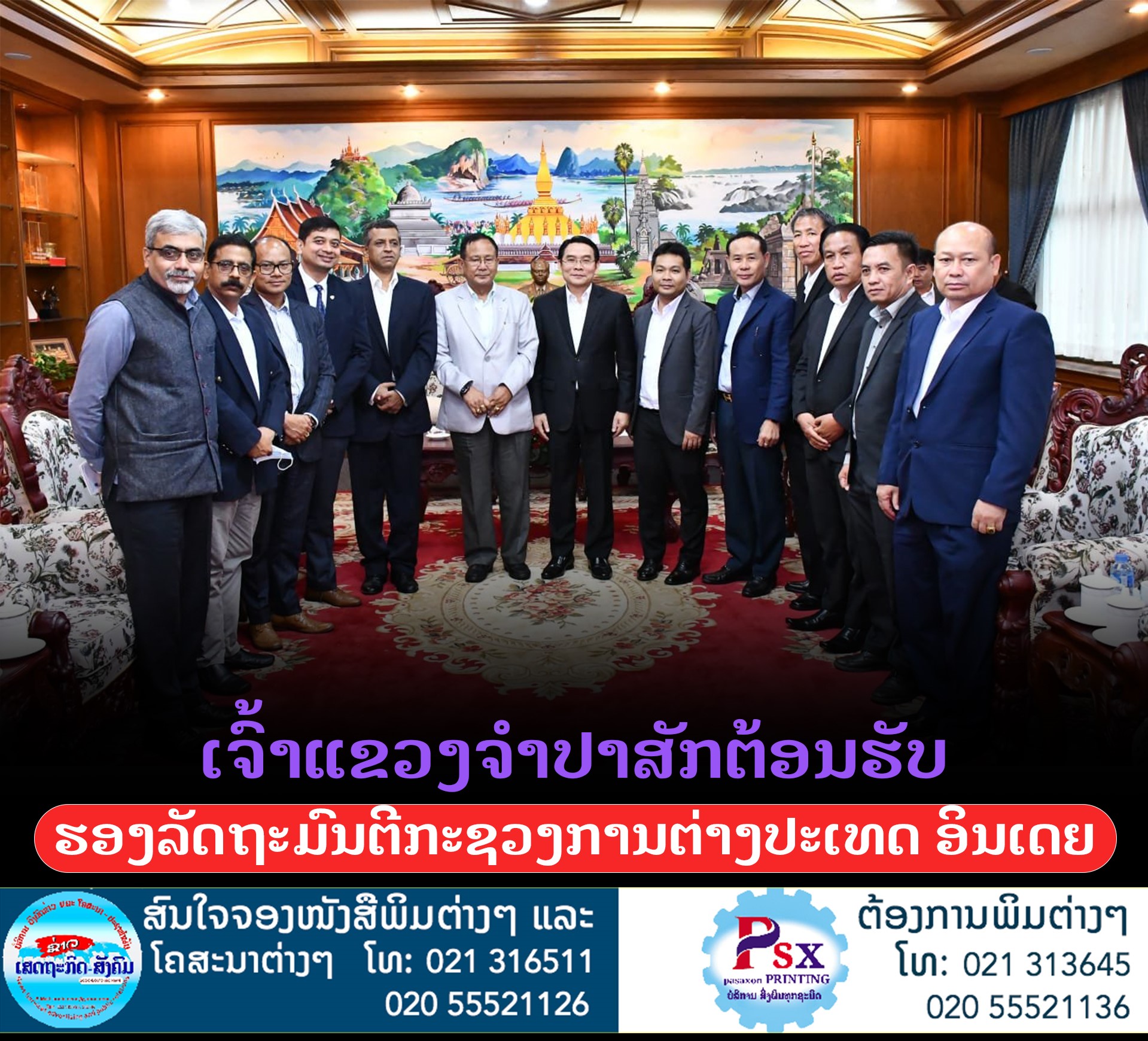 ທ່ານ ວິໄລວົງ ບຸດດາຄຳ ເຈົ້າແຂວງຈຳປາສັກ ໄດ້ຕ້ອນຮັບ ທ່ານ ຣາຈກູມາ ຣານຈັ່ນ ຊຶ່ງ (Rajkumar Ranjan Singh)