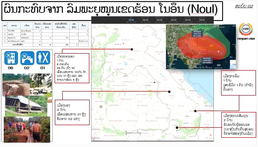 ພາຍຸໂນອຶນ ໄດ້ສົ່ງຜົນກະທົບຢ່າງຫຼວງຫຼາຍແກ່ປະຊາຊົນລາວແຕ່ເໜືອຮອດໃຕ້ຊຶ່ງໄດ້ສ້າງຄວາມເສຍຫາຍທາງດ້ານຊັບສິນແລະຊີວິດໂດຍໄດ້ສົ່ງຜົນເຮັດໃຫ້ເຮືອນປະຊາຊົນເສຍຫາຍ ແລະເປ່ເພ, ຖະໜົນຂົນທາງ, ຂົວຂາດ ແລະອື່ນໆ