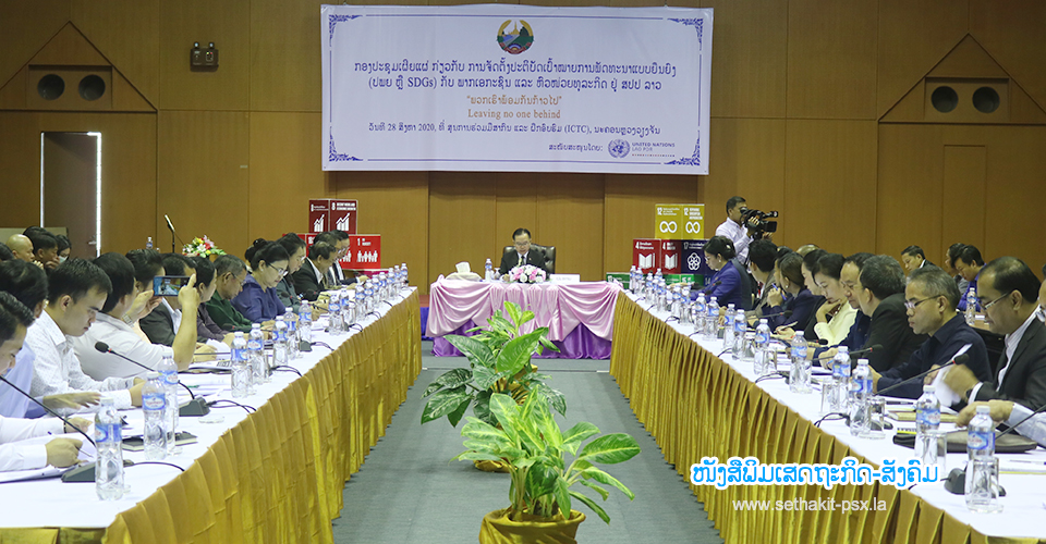 ວັນທີ 28 ສິງຫາ 2020 ກອງຄະນະຊີ້ນຳລະດັບຊາດເພື່ອການຈັດຕັ້ງປະຕິບັດເປົ້າໝາຍການພັດທະນາແບບຍືນຍົງໄດ້ຈັດກອງປະຊຸມເຜີຍແຜ່ການຈັດຕັ້ງເປົ້າໝາຍການພັດທະນາແບບຍືນຍົງ (ປພຍ) ໃຫ້ແກ່ພາກເອກະຊົນ ແລະຫົວໜ່ວຍທຸລະກິດຢູ່ ສປປ ລາວ