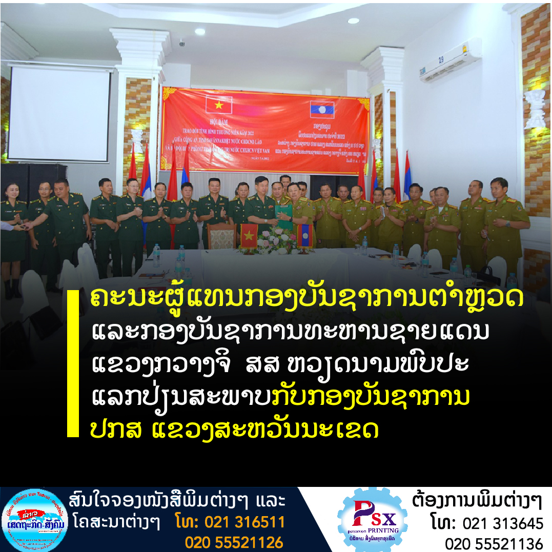 ຄະນະຜູ້ແທນກອງບັນຊາການຕຳຫຼວດ ແລະກອງບັນຊາການທະຫານຊາຍແດນ ແຂວງກວາງຈິ ສສ ຫວຽດນາມພົບປະແລກປ່ຽນສະພາບກັບກອງບັນຊາການ ປກສ ແຂວງສະຫວັນນະເຂດ