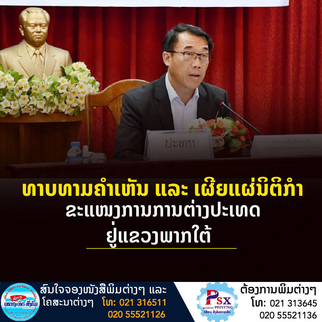 ທາບທາມຄຳເຫັນ ແລະເຜີຍແຜ່ນິຕິກໍາຂະແໜງການການຕ່າງປະເທດຢູ່ແຂວງພາກໃຕ້