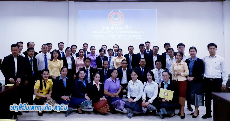 ສະຖາບັນການທະນາຄານ (ສທຄ) ໄດ້ສຳເລັດການຝຶກອົບຮົມໄລຍະສັ້ນໃນຫົວຂໍ້:“ການວິເຄາະລາຍງານດ້ານການເງິນຂອງລູກຄ້າກ່ອນການປ່ອຍສິນເຊື່ອ ”ຊຶ່ງດຳເນີນມາເປັນເວລາ 5 ວັນ ແລະສຳເລັດໃນວັນທີ 31 ກໍລະກົດ 2020