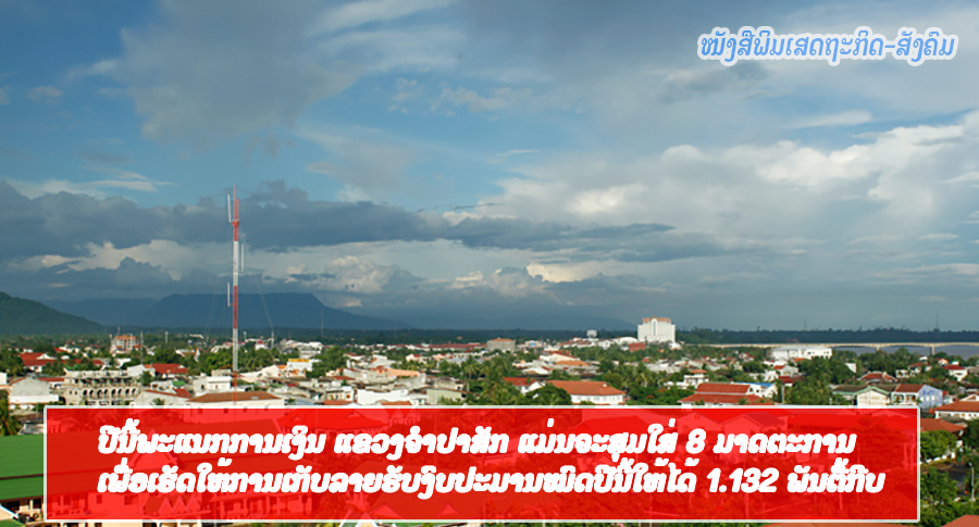 ປີນີ້ພະແນກການເງິນ ແຂວງຈໍາປາສັກ ແມ່ນຈະສຸມໃສ່ 8 ມາດຕະການເພື່ອເຮັດໃຫ້ການເກັບລາຍຮັບງົບປະມານໝົດປີນີ້ໃຫ້ໄດ້ 1.132 ພັນຕື້ກີບ ຫຼື ເທົ່າກັບ 72,68% ຂອງແຜນການປີໃນນີ້ ລາຍຮັບພູດສູນກາງໃຫ້ໄດ້ 737,70 ຕື້ກີບ ແລະອີກ 394,44 ຕື້ກີບ ແມ່ນລາຍຮັບພູດແຂວງ.