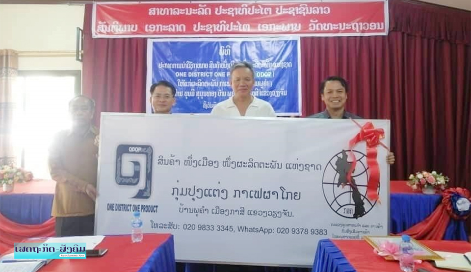 ພິທີປະກາດຮັບຮອງເອົາກາເຟຜາໂກຍເຂົ້າເປັນສິນຄ້າໜຶ່ງເມືອງໜຶ່ງຜະລິດຕະພັນແຫ່ງຊາດ ຫຼືສິນຄ້າໂອດັອບໄດ້ຂຶ້ນເມື່ອບໍ່ດົນຜ່ານມານີ້ທີ່ຫ້ອງປະຊຸມຂອງຫ້ອງການສາ ທາລະນະສຸກ ເມືອງກາສີ ແຂວງວຽງຈັນ, ໂດຍເຂົ້າຮ່ວມມີທ່ານ ສີທົນ ແສງພະຈັນ ເຈົ້າເມືອງໆກາສີ,
