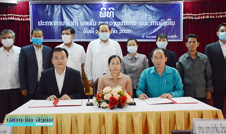 ພິທີປະກາດການຈັດຕັ້ງພາຍໃນກະຊວງແຜນການ ແລະການລົງທຶນ (ຜທ) ຈັດຂຶ້ນໃນວັນທີ 21 ກໍລະກົດ 2020 ທີ່ກະຊວງແຜນການ ແລະການລົງທຶນພາຍໃຕ້ການເປັນປະທານຂອງທ່ານ ສອນໄຊ ສີພັນດອນ ຮອງນາຍົກລັດຖະມົນຕີ, ລັດຖະມົນຕີກະຊວງແຜນການ ແລະການລົງທຶນ,
