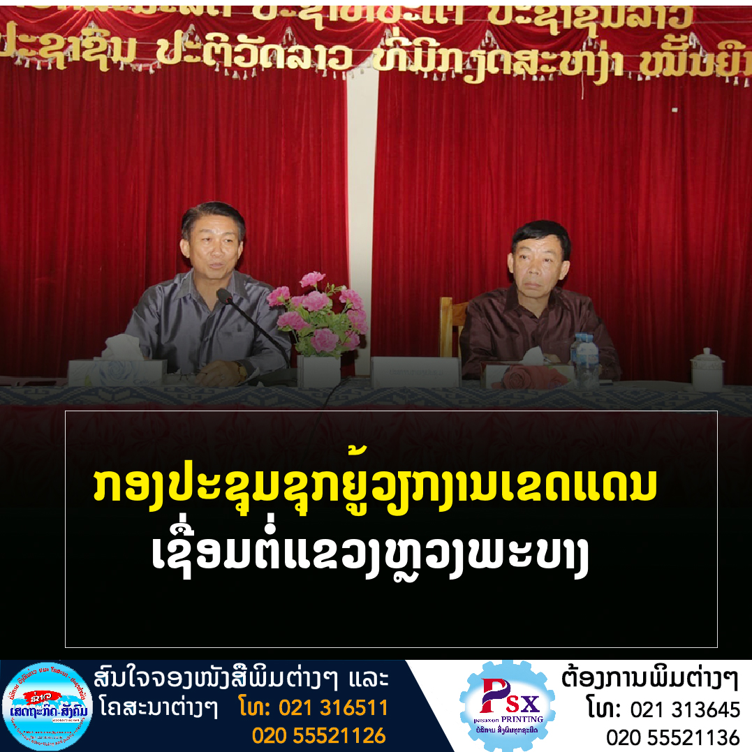 ກອງປະຊຸມຊຸກຍູ້ວຽກງານເຂດແດນເຊື່ອມຕໍ່ລະຫວ່າງກະຊວງພາຍໃນ ແລະ ແຂວງຫຼວງພະບາງ ໄດ້ຈັດຂື້ນວັນທີ 7 ມິຖຸນາ 2022 ພາຍໃຕ້ການເປັນປະທານຂອງ ທ່ານ ທອງຈັນ ມະນີໄຊ ລັດຖະມົນຕີກະຊວງພາຍໃນເຂົ້າຮ່ວມມີ ທ່ານ ບຸນເລື່ອມ ມະນີວົງ ຮອງເຈົ້າແຂວງໆຫຼວງພະບາງ