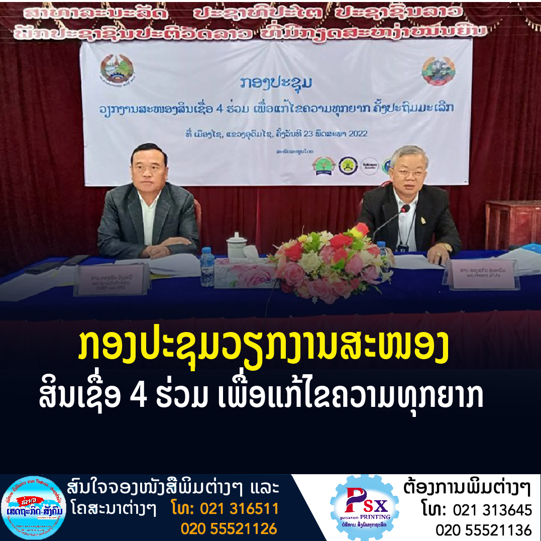 ກອງປະຊຸມສະຫຼຸບວຽກງານສະໜອງສິນເຊື່ອ 4 ຮ່ວມ ເພື່ອແກ້ໄຂຄວາມທຸກຍາກຄັ້ງປະຖົມມະເລີກຂອງແຂວງອຸດົມໄຊ.