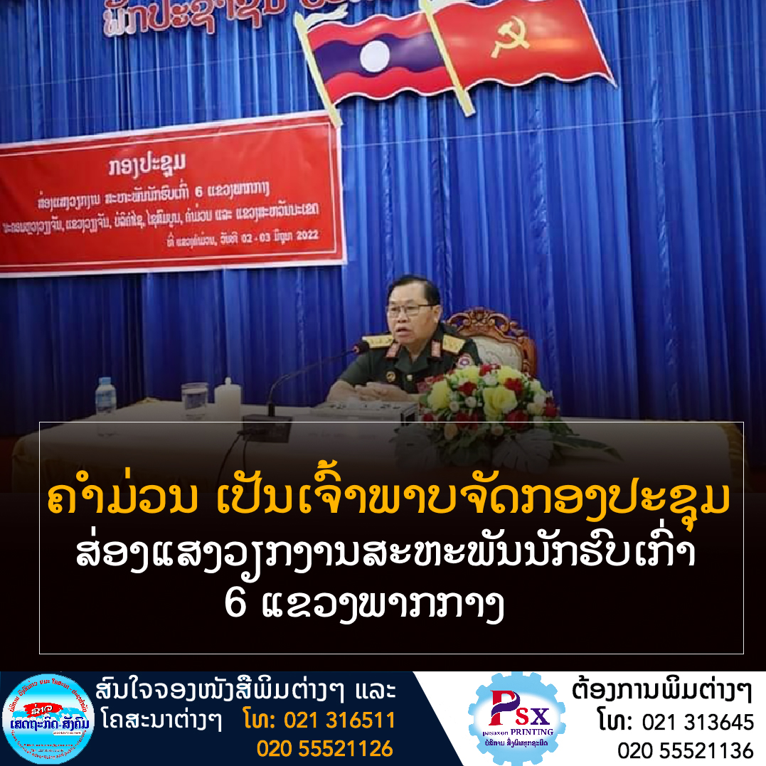 ກອງປະຊຸມດັ່ງກ່າວຈັດຂຶ້ນໃນວັນທີ 2 ມີຖຸນາ 2022 ທີ່ເຮືອນຮັບແຂກເລກ 1 ຂອງແຂວງຄໍາມ່ວນ, ໂດຍການເປັນປະທານຂອງ ທ່ານ ພົ/ທ ແສງນວນ ໄຊຍະລາດ ເລຂາຄະນະພັກ, ປະທານສະຫະພັນນັກຮົບເກົ່າແຫ່ງຊາດລາວ, ມີທ່ານ ສົມໃຈ ພານີຈັນ ຄະນະປະຈຳພັກແຂວງ,