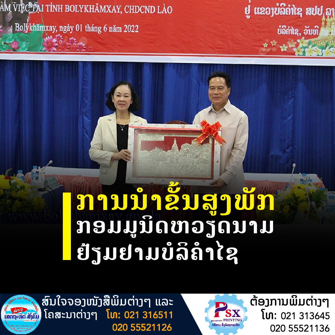 ໃນວັນທີ 01 ມິຖຸນາ 2022 ຢູ່ຫ້ອງປະຊຸມຫ້ອງວ່າການແຂວງບໍລິຄໍາໄຊ ສະຫາຍ ນາງ ເຈືອງທິມາຍ ກໍາມະການກົມການເມືອງ,