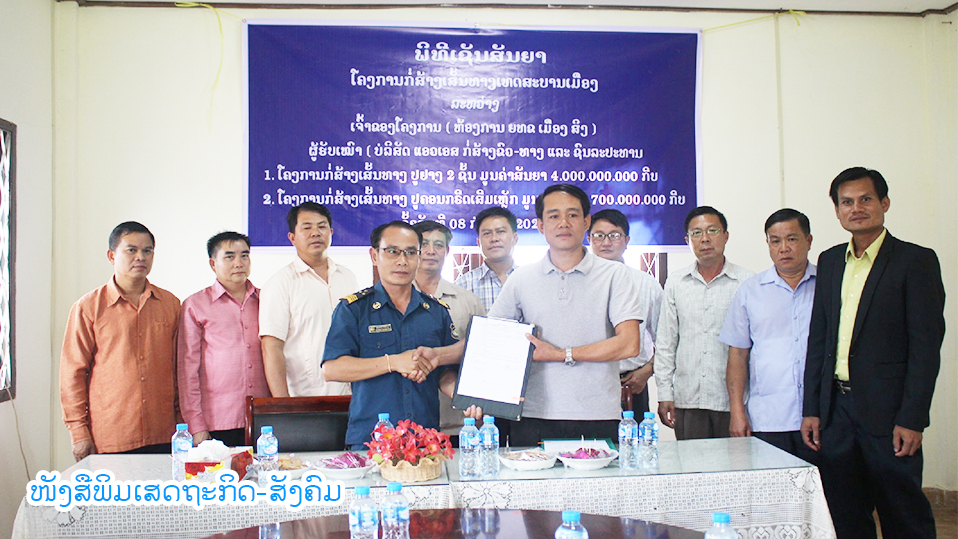 ວັນທີ 8 ກໍລະກົດ 2020 ທີ່ຫ້ອງປະຊຸມຫ້ອງການໂຍທາທິການ ແລະຂົນສົ່ງເມືອງສິງ ແຂວງຫຼວງນໍ້າທາໄດ້ຈັດພິທີເຊັນສັນຍາໂຄງການກໍ່ສ້າງເສັ້ນທາງເທສະບານເມືອງ, ເຂົ້າຮ່ວມມີທ່ານ ຄໍາຜາຍ ສຸລີຂັນ ປະທານກວດກາພັກ-ລັດເມືອງ,