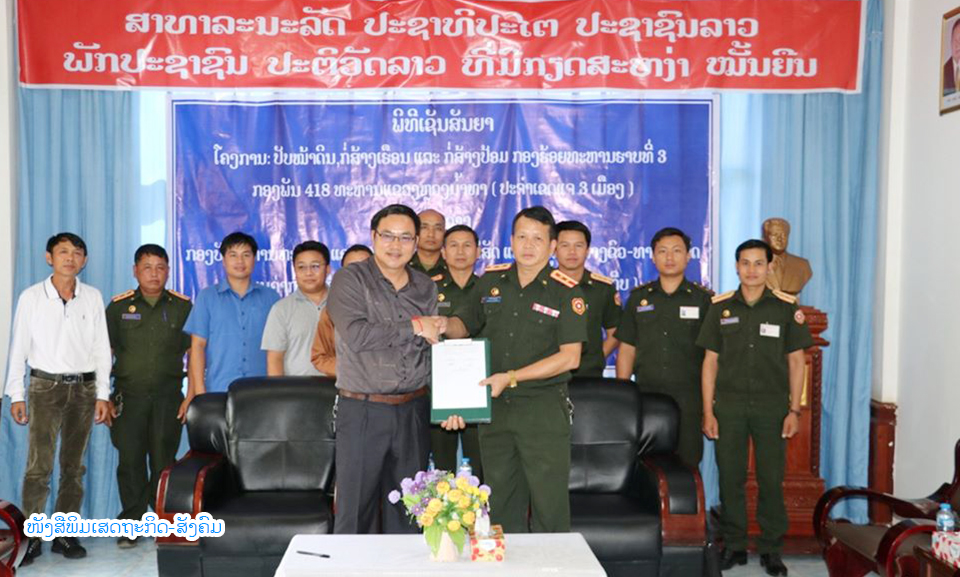ທ້າຍເດືອນ ມິຖຸນາ 2020 ນີ້ກອງບັນຊາການທະຫານແຂວງຫຼວງນໍ້າທາ ໄດ້ເຊັນສັນຍາໂຄງການກໍ່ສ້າງຫ້ອງການ, ເຮືອນນອນ, ປ້ອມ ແລະປັບໜ້າດິນ, ກອງຮ້ອຍທີ 3 ກອງພັນນ້ອຍທະຫານຮາບ 418 ທະຫານແຂວງຫຼວງນໍ້າທາ