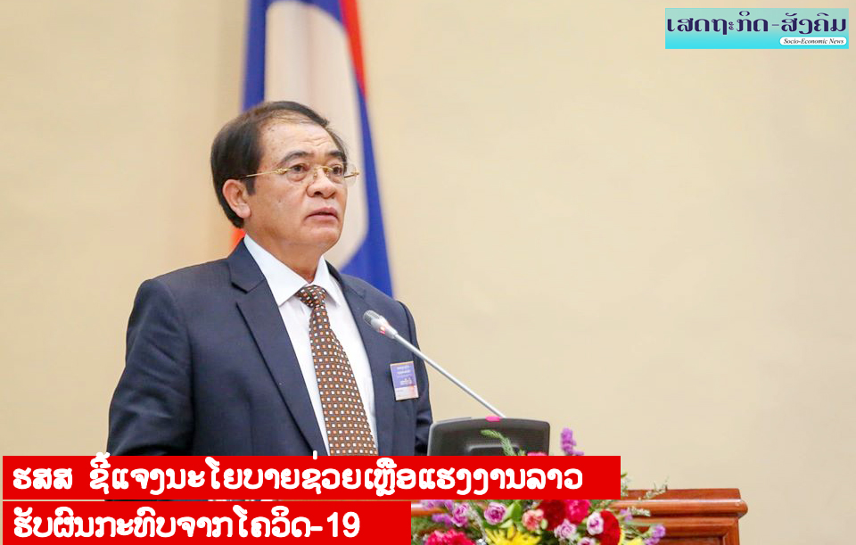 ທ່ານ ຄໍາແພງ ໄຊສົມແພງ ລັດຖະມົນຕີກະຊວງແຮງງານ ແລະສະຫວັດດີການສັງຄົມໄດ້ຂຶ້ນຊີ້ແຈງກ່ຽວກັບນະໂຍບາຍ ແລະມາດຕະການຊ່ວຍເຫຼືອແຮງງານລາວທີ່ໄດ້ຮັບຜົນກະທົບຈາກການລະບາດຂອງພະຍາດ (ໂຄວິດ-19) ຕໍ່ກອງປະຊຸມສະໄໝສາມັນເທື່ອທີ 9 ຂອງສະພາແຫ່ງຊາດຊຸດທີ VIII