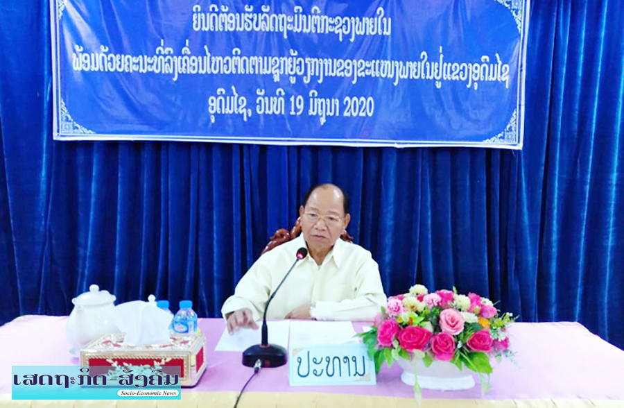 ວັນທີ 19 ມິຖຸນາຜ່ານມາທ່ານ ຄໍາໝັ້ນ ສູນວິເລີດ ລັດຖະມົນຕີກະຊວງພາຍໃນພ້ອມຄະນະໄດ້ລົງເຄື່ອນໄຫວຢ້ຽມຢາມ ແລະເຮັດວຽກທີ່ ແຂວງອຸດົມໄຊ ພ້ອມທັງພົບ ປະ ແລະໂອ້ລົມບັນດາພະນັກງານຫຼັກແຫຼ່ງຊຶ່ງມີທ່ານ ພົມມາ ວັນນະກຳ ຫົວໜ້າພະແນກພາຍໃນແຂວງອຸດົມໄຊ,