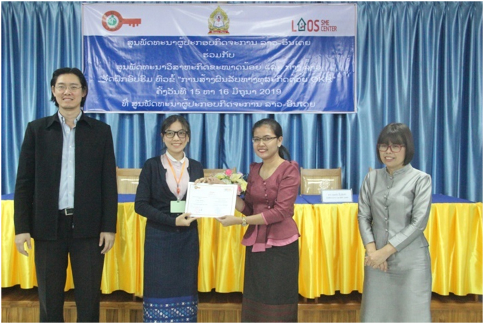ສູນພັດທະນາຜູ້ປະກອບກິດຈະການລາວ-ອິນເດຍຮ່ວມກັບສູນ Lao SME Center ໄດ້ຈັດຝຶກອົບຮົມຫົວຂໍ້ “ສ້າງຜົນຮັບທາງທຸລະກິດດ້ວຍ OKR” ໃຫ້ນັກສຳມະນາກອນ 19 ທ່ານຈາກລັດວິສາຫະກິດຂາເຂົ້າ-ຂາອອກກອງທັບ, ລັດວິສາຫະກິດໄຟຟ້າລາວ, ໂຮງງານນໍ້າກ້ອນເຮືອງອານົງ LAO TSUINUR ACOCTD,