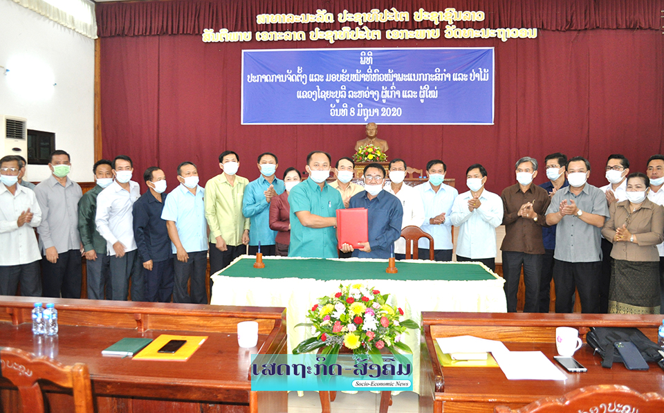 ພິທີປະກາດການຈັດຕັ້ງ ແລະມອບຮັບໜ້າທີ່ຫົວໜ້າພະແນກກະສິກໍາ ແລະປ່າໄມ້ ແຂວງໄຊຍະບູລີ ລະຫວ່າງທ່ານ ສົມຫວັງ ແກ້ວວິໄລສັກ ຫົວໜ້າພະແນກກະສິກໍາແລະປ່າໄມ້ແຂວງໄຊ ຍະບູລີຜູ້ເກົ່າ ແລະທ່ານ ບຸດສະກອນ ອິນທະລັງສີ ຫົວໜ້າພະແນກກະສິກໍາ ແລະປ່າໄມ້ຜູ້ໃໝ່ໄດ້ຈັດຂຶ້ນໃນວັນທີ 8 ມິຖຸນາ 2020