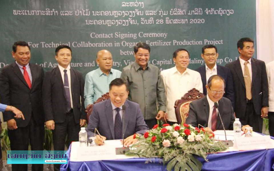 ກຸ່ມບໍລິສັດ ມາລີນີ ຈຳກັດ ກຽມຈະສ້າງໂຮງງານຝຸ່ນຊີວະພາບຂະໜາດໃຫຍ່ແຫ່ງໃໝ່ຢູ່ເຂດເມືອງໄຊເສດຖາ ເພື່ອນຳໃຊ້ດິນຕົກຕະກອນໃຕ້ນໍ້າຂອງຮ່ອງລະບາຍນໍ້າອອກຈາກຕົວເມືອງນະຄອນຫຼວງວຽງຈັນ ມາເຮັດເປັນຝຸ່ນຊີວະພາບຕິດພັນກັບການບຳບັດນໍ້າສະໜອງໃຫ້ແກ່ຊາວກະສິກອນພາຍໃນປະເທດ;