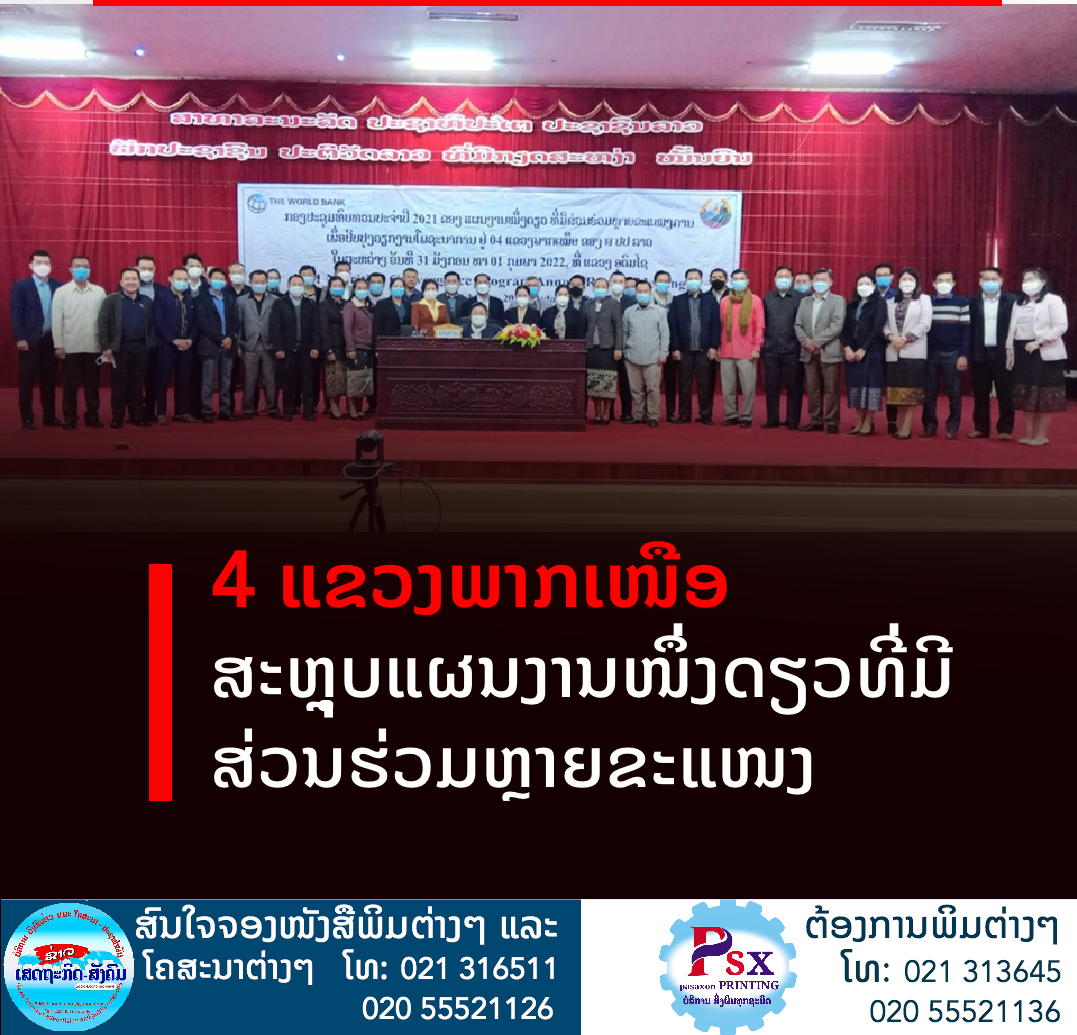 ຜົ້ງສາລີ, ຊຽງຂວາງ, ຫົວພັນ ແລະ ອຸດົມໄຊ ໄດ້ສະຫຼຸບການເຄື່ອນໄຫວຈັດຕັ້ງປະຕິບັດແຜນງານໜຶ່ງດຽວ ທີ່ມີສ່ວນຮ່ວມຈາກຫຼາຍຂະແໜງການ, ເພື່ອປັບປຸງວຽກງານໂພຊະນາການ ຢູ່ 4 ແຂວງພາກເໜືອຂອງ ສປປ ລາວ ປະຈຳປີ 2021 ແລະ ທິດທາງແຜນການ ປະຈຳປີ 2022.