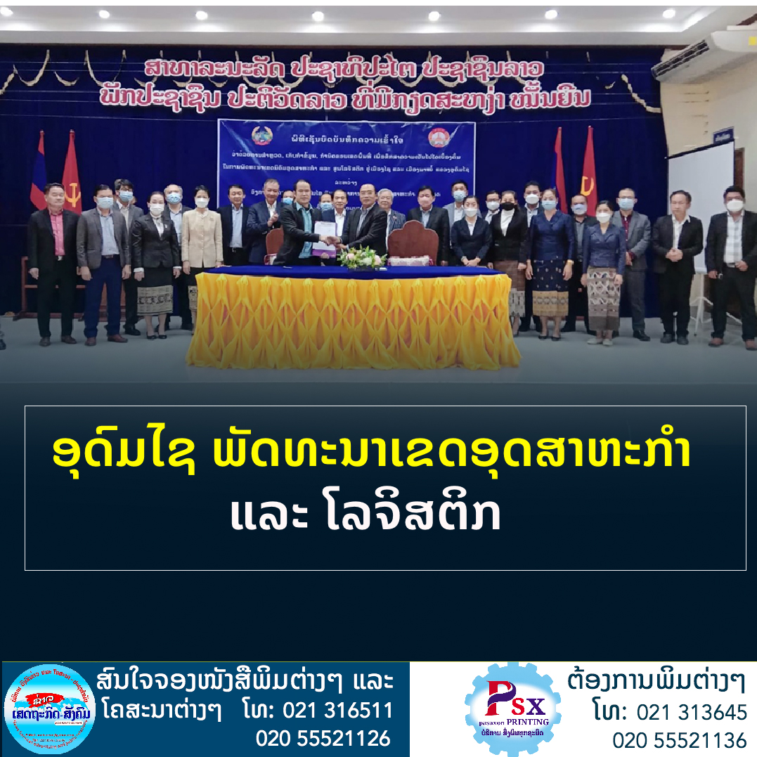 ແຂວງອຸດົມໄຊ ໄດ້ເຊັນບົດບັນທຶກຄວາມເຂົ້າໃຈ ວ່າດ້ວຍການສໍາຫຼວດ, ເກັບກໍາຂໍ້ມູນ ແລະ ຂອບເຂດພື້ນທີ່ ເພື່ອສຶກສາຄວາມເປັນໄປໄດ້ເບື້ອງຕົ້ນໃນການພັດທະນາເຂດອຸດສາຫະກຳ ແລະ ສູນໂລຈິສຕິກ ເມືອງໄຊ ແລະ ເມືອງນາໝໍ້.