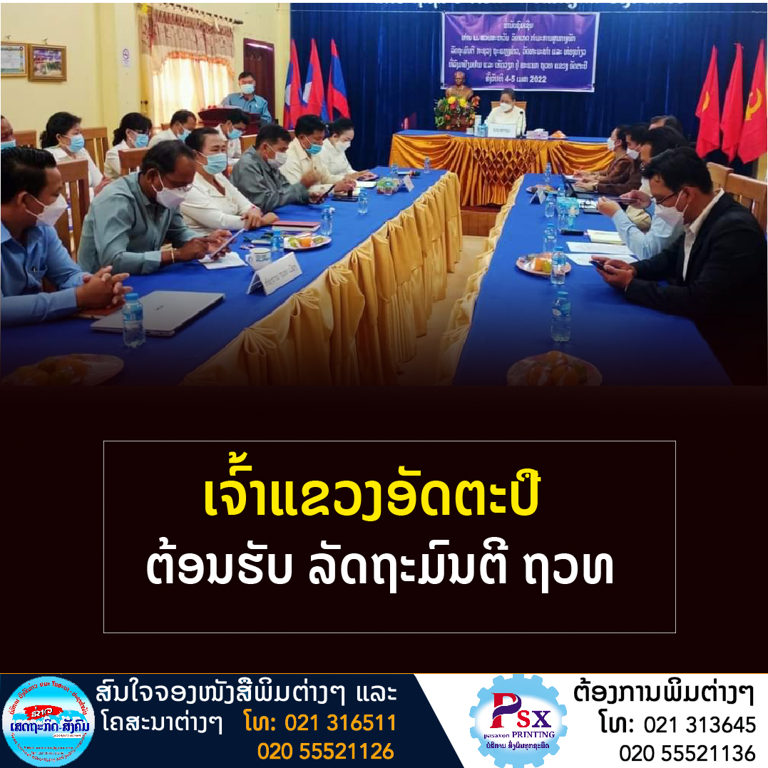 ເມື່ອວັນທີ 5 ເມສາ 2022, ທ່ານ ເລັດ ໄຊຍະພອນ ເຈົ້າແຂວງອັດຕະປື, ໄດ້ຕ້ອນຮັບ ທ່ານ ນາງ ສວນສະຫວັນ ວິຍະເກດ ລັດຖະມົນຕີ ກະຊວງຖະແຫຼງຂ່າວ, ວັດທະນະທໍາ ແລະທ່ອງທ່ຽວ (ຖວທ) ພ້ອມດ້ວຍຄະນະ, ໃນໂອກາດເດີນທາງຢ້ຽມຢາມແຂວງອັດຕະປື ໃນລະຫວ່າງວັນທີ 4-5 ເມສາ 2022 .
