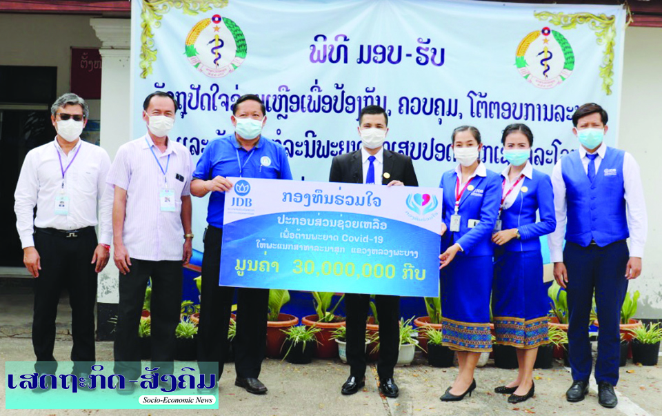 ທະນາຄານຮ່ວມພັດທະນາ (ເຈດີບີ) ສາຂາແຂວງຫຼວງພະບາງໄດ້ປະກອບສ່ວນເງິນສົດຈໍານວນ 30 ລ້ານກີບໃຫ້ທາງຄະນະສະເພາະກິດຕ້ານ ແລະສະກັດກັ້ນການລະ ບາດຂອງພະຍາດໂຄວິດ-19 ຂັ້ນແຂວງເພື່ອນໍາໄປໃຊ້ເຂົ້າໃນການຈັດຊື້ອຸປະກອນການແພດຕ້ານການລະບາດຂອງໂຄວິດ-19 ຢູ່ແຂວງຫຼວງພະບາງ.