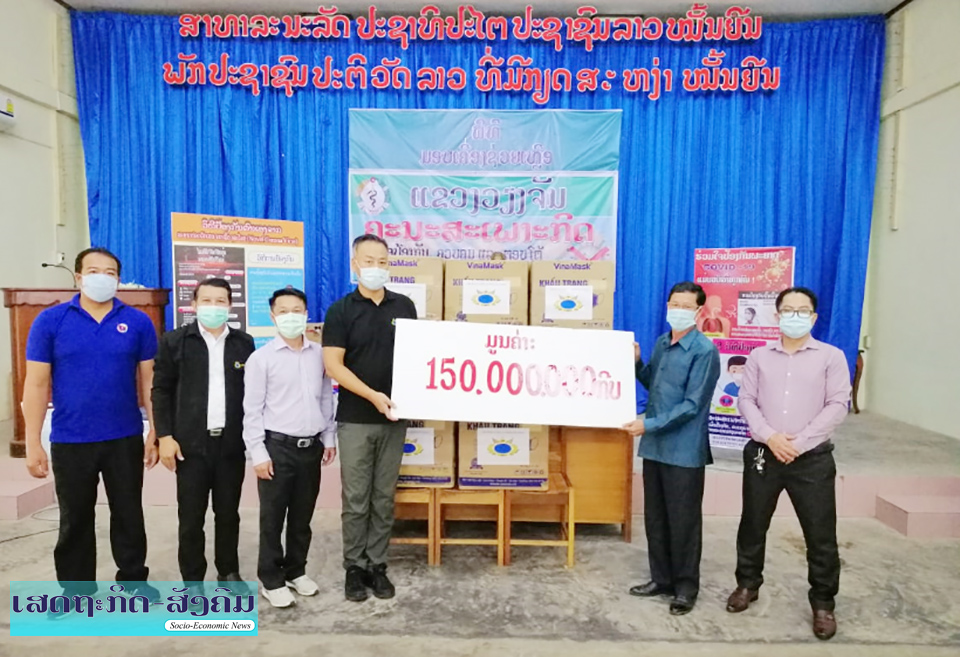 ໃນວັນທີ 27 ເມສານີ້ ທີ່ຫ້ອງວ່າການປົກຄອງແຂວງວຽງຈັນ ທ່ານ ດູ ເວັນລ່ຽງ (DUWENLIANG) ຕາງໜ້າບໍລິສັດທີ່ປຶກສາດ້ານການລົງທຶນ ແລະກໍ່ສ້າງເຂື່ອນໄຟຟ້າ ຈຳກັດ ໄດ້ມອບເງິນຈຳນວນ 100 ລ້ານກີບ ແລະຜ້າອັດປາກມູນຄ່າ 50 ລ້ານກີບ