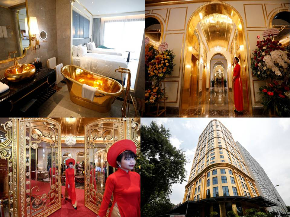 ຍິ່ງໃຫຍ່ອະລັງການ ໂຮງແຮມໂດລເຊ່ ຮ່າ ໂນ້ຍ ໂກລເດັ້ນ ເລກໂຮເຕັນ ຂອງຮວາບິນ ກຣຸບ ເປັນໂຮງແຮມລະດັບ 5 ດາວ ຕັ້ງຢູ່ໃຈກາງນະຄອນຫຼວງຮ່າໂນ້ຍຂອງ ສສ ຫວຽດນາມ ຊຶ່ງ ທຸກສິ່ງທຸກຢ່າງພາຍໃນໂຮງແຮມເຄືອບດ້ວຍ ຄຳແທ້ສີເຫຼືອງ ຫວັງດຶງດູດແຂກມາພັກເຊົາ.