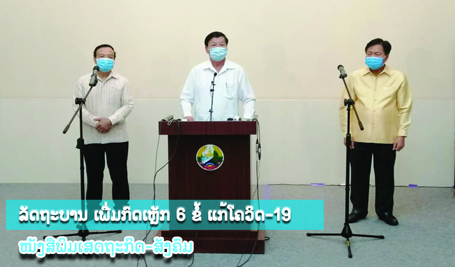ໃນວັນທີ 25 ມີນາ 2020 ທີ່ສໍານັກງານນາຍົກລັດຖະມົນຕີ, ທ່ານ ທອງລຸນ ສີສຸລິດ ນາຍົກລັດຖະມົນຕີແຫ່ງ ສປປ ລາວ ພ້ອມຄະນະສະເພາະກິດແກ້ໄຂການແຜ່ລະ ບາດຂອງພະຍາດໂຄວິດ 19 ໄດ້ຖະແຫຼງຂ່າວຕໍ່ສື່ມວນຊົນກ່ຽວກັບການລະບາດຂອງເຊື້ອພະຍາດໂຄວິດ-19
