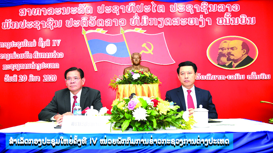 ເມື່ອອາທິດຜ່ານມາທີ່ຫ້ອງປະຊຸມກະຊວງການຕ່າງປະເທດ, ກອງປະຊຸມໃຫຍ່ຄັ້ງທີ IV ຂອງໜ່ວຍພັກກົມການຂ່າວ, ກະຊວງການຕ່າງປະເທດໄດ້ໄຂຂຶ້ນຢ່າງເປັນທາງ ການ, ໂດຍການໃຫ້ກຽດເປັນປະທານຂອງສະຫາຍ ສະເຫຼີມໄຊ ກົມມະສິດ ກໍາມະການສູນກາງພັກ,