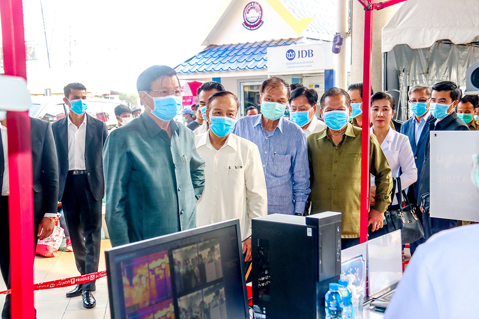 ວັນທີ 16 ມີນາ 2020 ນີ້ທ່ານ ທອງລຸນ ສີສຸລິດ ນາຍົກລັດຖະມົນຕີພ້ອມດ້ວຍຄະນະໄດ້ລົງເຄື່ອນໄຫວຕິດຕາມການເຝົ້າລະວັງ, ປ້ອງກັນ, ຄວບຄຸມ ແລະແກ້ໄຂການແຜ່ລະບາດຂອງພະຍາດໄວຣັດໂຄວິດ-19 ຢູ່ດ່ານສາກົນຂົວມິດຕະພາບລາວ-ໄທ 1, ສະໜາມບິນສາກົນວັດໄຕ,
