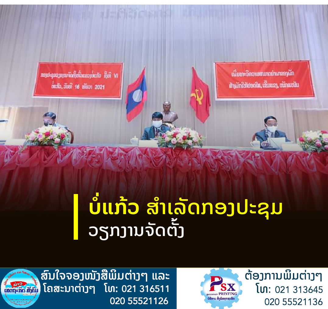 ກອງປະຊຸມວຽກງານຈັດ ຕັ້ງທົ່ວແຂວງບໍ່ແກ້ວ ຄັ້ງທີ VI ໄດ້ໄຂຂຶ້ນແລະປິດລົງໃນວັນທີ 16 ທັນວາ 2021 ທີ່ແຂວງດັ່ງກ່າວໂດຍການເປັນປະທານຂອງສະຫາຍ ສົມພອນ ແກ້ວມະນີ ຄະນະປະຈໍາພັກແຂວງຫົວໜ້າຄະນະຈັດຕັ້ງແຂວງບໍ່ແກ້ວ,