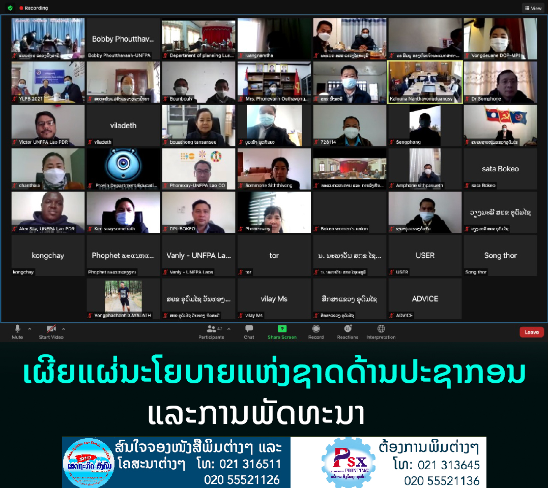 ກະຊວງແຜນການ ແລະການລົງທຶນ (ຜທ) ຮ່ວມກັບອົງການສະຫະປະຊາຊາດກອງທຶນສໍາລັບປະຊາກອນ(UNFPA) ປະຈໍາ ສປປ ລາວ ເຜີຍແຜ່ນະໂຍບາຍແຫ່ງຊາດດ້ານປະຊາກອນ ແລະການພັດທະນາ (2019-2030) ໃຫ້ບັນດາແຂວງພາກເໜືອ ຄື: