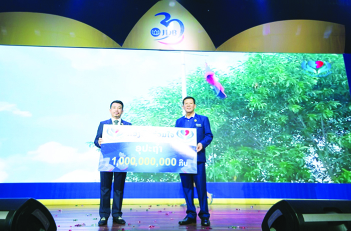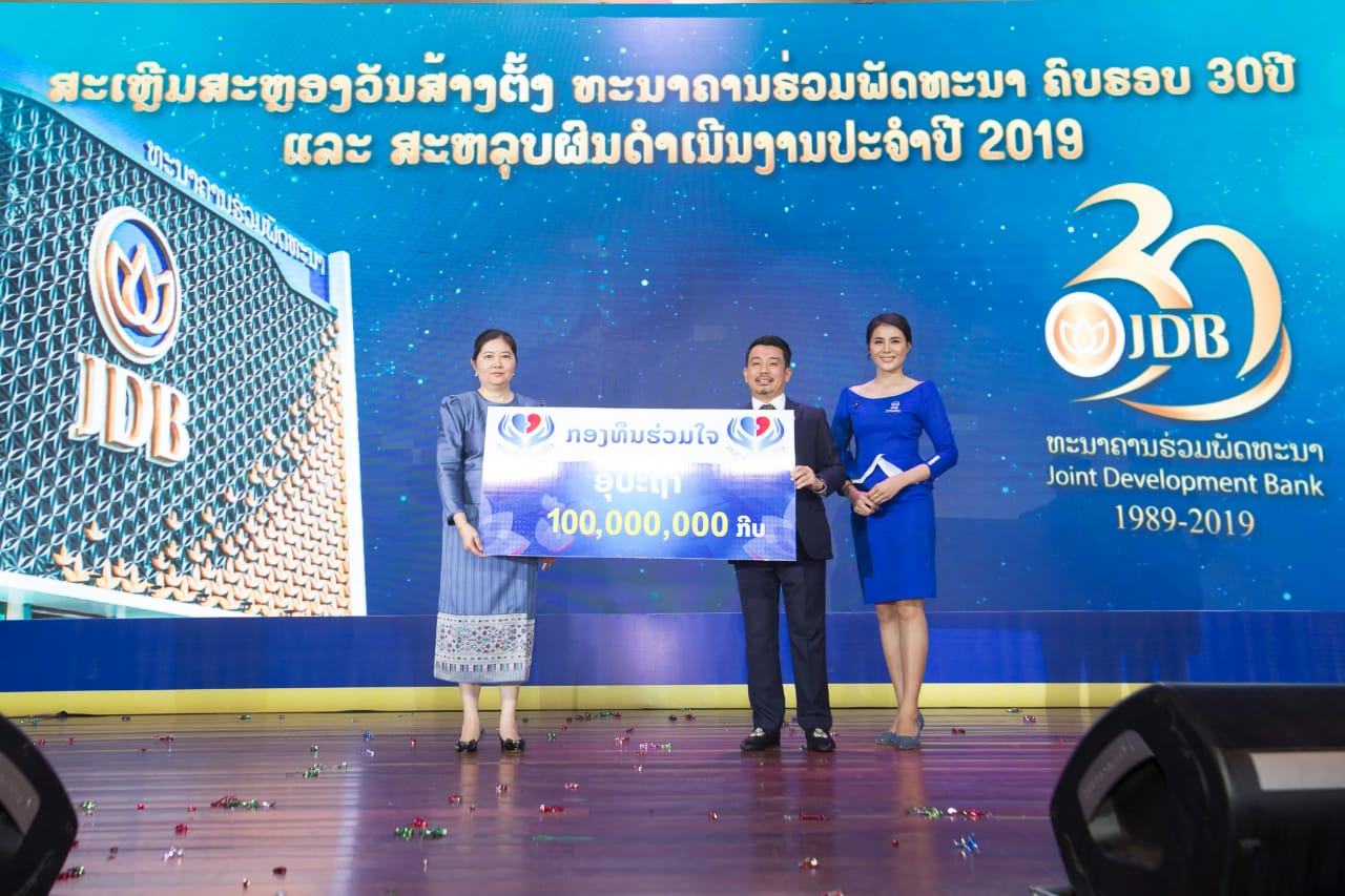 ເມື່ອວັນທີ 7 ກຸມພາຜ່ານມາທີ່ໂຮງແຮມແລນມາກ ນະຄອນຫຼວງວຽງຈັນ ທະນາຄານຮ່ວມພັດທະນາໄດ້ມອບເງີນຈໍານວນ 1 ພັນລ້ານກີບໃຫ້ກອງທຶນຮ່ວມໃຈ,