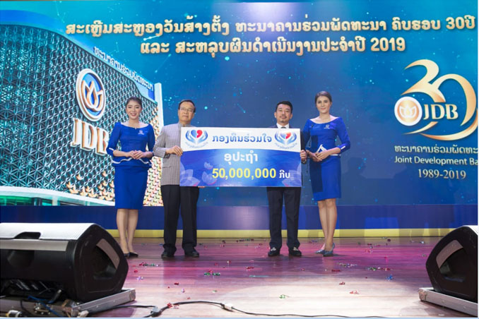 ໃນວັນທີ 7 ກຸມພາ 2020 ທີ່ໂຮງແຮມແລນມາກ ນະຄອນຫຼວງວຽງຈັນ ທະນາຄານຮ່ວມພັດທະນາໄດ້ມອບເງິນຈໍານວນ 50 ລ້ານກີບ ເພື່ອເປັນການປະກອບສ່ວນຊ່ວຍເຫຼືອຊາວເມືອງອູຮັ້ນຕໍ່ຕ້ານພະຍາດອັກເສບປອດສາຍພັນໃໝ່ໂຄໂລນາຊຶ່ງການຄັ້ງນີ້ແມ່ນເນື່ອງໃນໂອກາດສະເຫຼີມສະຫຼອງຄົບຮອບ 30 ປີ