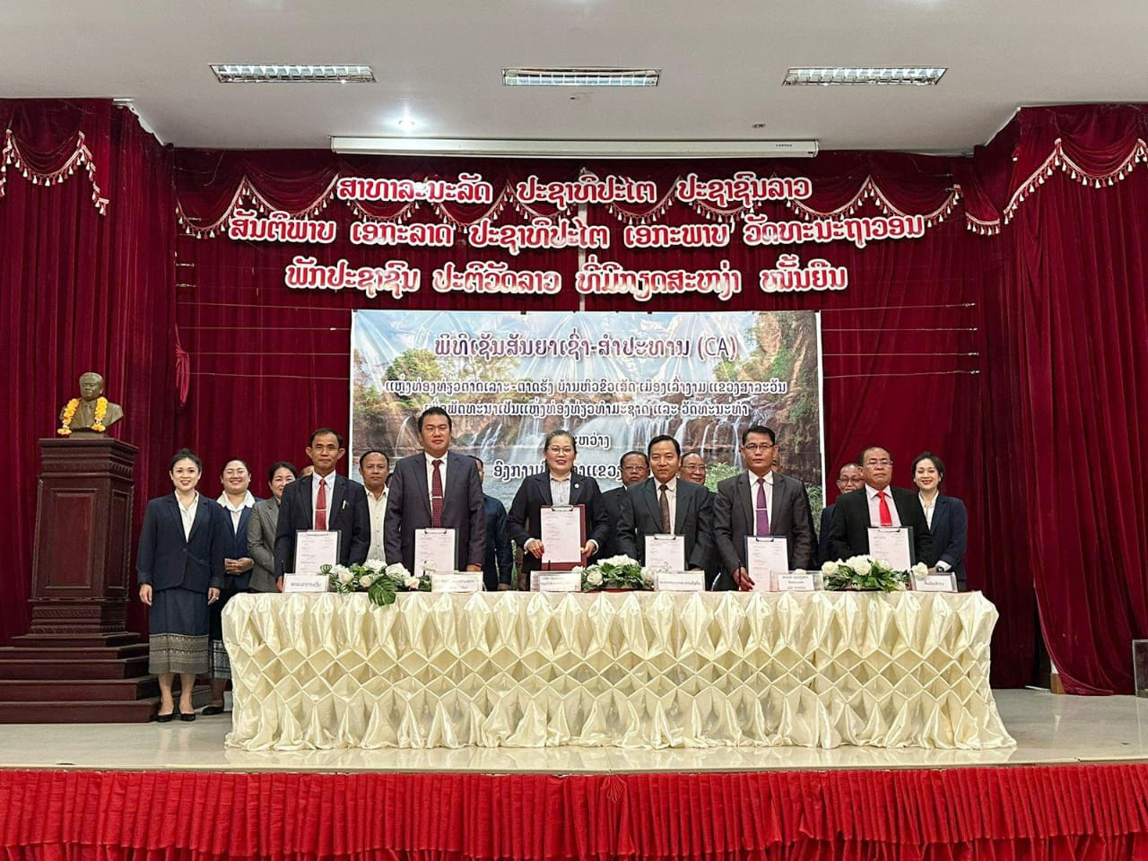 ລັດຖະບານກໍຄືການນໍາແຂວງສາລະວັນອະນຸຍາດໃຫ້ບໍລິສັດພັດທະນາແຫລ່ງທ່ອງທ່ຽວຕາດເຍືອງ ຫລັກ 40 ເມືອງປາກຊ່ອງ ຈຳກັດ ສຳປະທານ ພັດທະນາແຫລ່ງທ່ອງທ່ຽວນໍ້າຕົກຕາດເລາະ-ຕາດຮັງ ຢູ່ບ້ານຫົວຂົວເສັດ ເມືອງເລົ່າງາມ ແຂວງສາລະວັນ