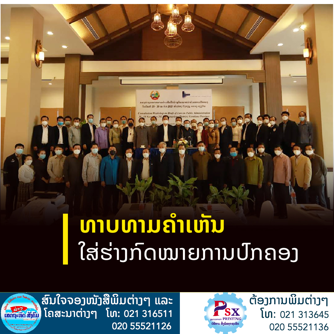 ເມື່ອບໍ່ດົນມານີ້ ເມືອງວັງວຽງ ແຂວງວຽງຈັນ ໄດ້ມີກອງປະຊຸມທາບທາມຄໍາເຫັນໃສ່ຮ່າງກົດໝາຍວ່າດ້ວຍການປົກຄອງດ້ວຍການສະໜັບສະໜູນຂອງສະຖາບັນຊ່ວຍເຫຼືອທາງດ້ານກົດໝາຍ ແລະວິຊາການ (ILSTA)