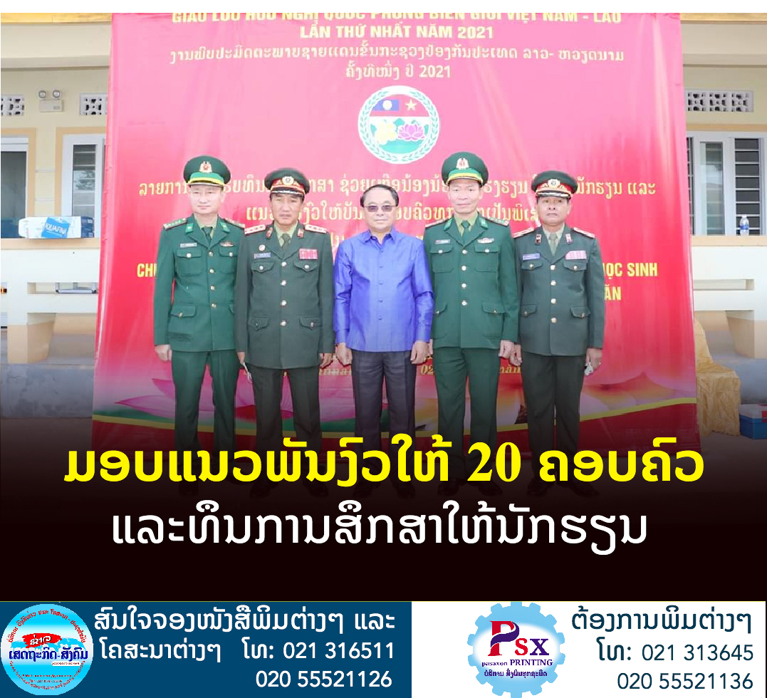 ເມື່ອບໍ່ດົນມານີ້ທີ່ສຸກສາລາບ້ານແດນສະຫວັນ ເມືອງເຊໂປນ ແຂວງສະຫວັນະເຂດ ກອງບັນຊາການທະຫານຊາຍແດນສຸງສຸດຮ່ວມກັບກອງບັນຊາການທະຫານຊາຍແດນແຂວງກວາງຈິ ສສ ຫວຽດນາມ ໄດ້ຈັດພິທີມອບທຶນການສຶກສາໃຫ້ແກ່ນ້ອງນັກຮຽນໄປໂຮງຮຽນຈຳນວນ 100 ຄົນ ລວມເງິນ 150 ລ້ານດົງ