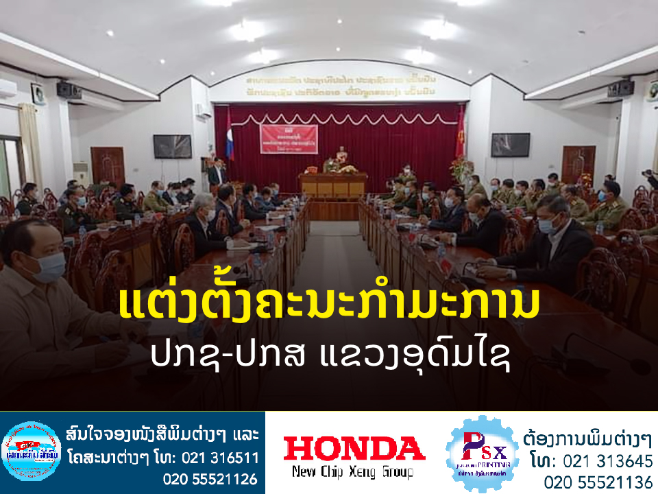 ພິທີປະກາດແຕ່ງຕັ້ງຄະນະກຳມະການປ້ອງກັນຊາດ-ປ້ອງກັນຄວາມສະຫງົບ ແຂວງອຸດົມໄຊ ໄດ້ຈັດຂຶ້ນໃນວັນທີ 12 ພະຈິກ 2021 ທີ່ຫ້ອງປະຊຸມຫ້ອງວ່າການແຂວງໂດຍການເປັນປະທານຂອງ ສະຫາຍ ພົນຕີ ກົງທອງ ພົງວິຈິດ ກຳມະການສູນກາງພັກຄະນະກຳມະການປກຊ- ປກສ
