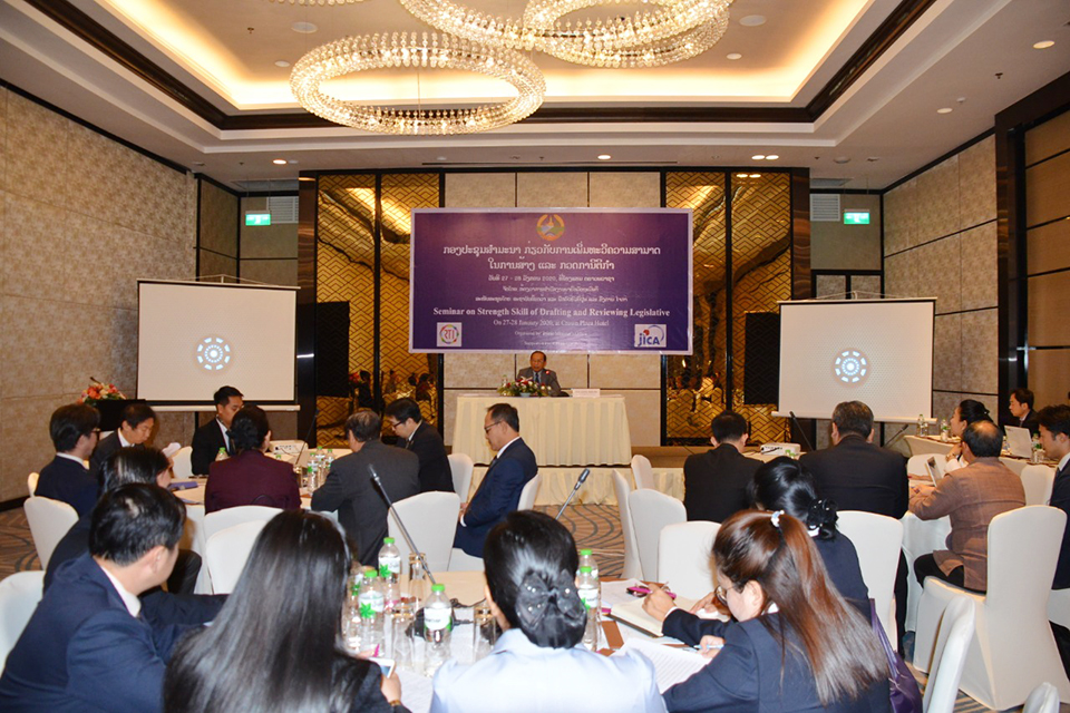(ກົມນິຕິກຳ) ຫ້ອງວ່າການສຳນັກງານນາຍົກລັດຖະມົນຕີໄດ້ຈັດກອງປະຊຸມສຳມະນາກ່ຽວກັບການເພີ່ມທະວີຄວາມສາມາດໃນການສ້າງ ແລະກວດການິຕິກຳໂດຍການສະໜັບສະໜູນຈາກສະຖາບັນຄົ້ນຄວ້າ ແລະຝຶກອົບຮົມຍຸຕິທຳກະຊວງຍຸຕິທຳປະເທດຍີ່ປຸ່ນ ແລະອົງການຮ່ວມມືສາກົນຍີ່ປຸ່ນ (JICA)