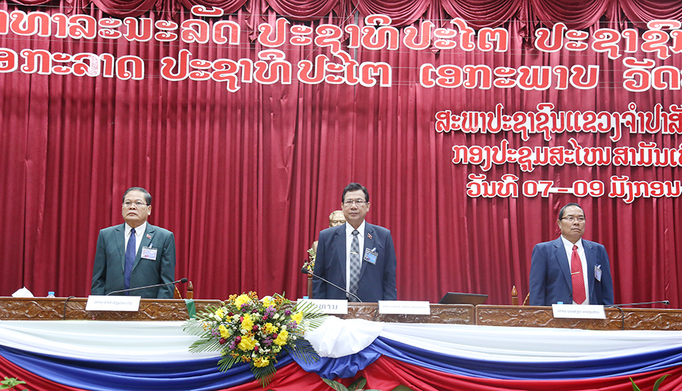 ກອງປະຊຸມສະໄໝສາມັນເທື່ອທີ 8 ຂອງສະພາປະຊາຊົນແຂວງຈໍາປາສັກຊຸດທີ I ໄດ້ອັດລົງດ້ວຍຜົນສໍາເລັດຈົບງາມໃນບໍ່ດົນຜ່ານມານີ້,ໂດຍກອງປະຊຸມດຳເນີນພາຍໃຕ້ການເປັນປະທານຂອງທ່ານ ເມກສະຫວັນ ພົມພິທັກ ປະທານສະພາປະຊາຊົນແຂວງຈໍາປາສັກ.