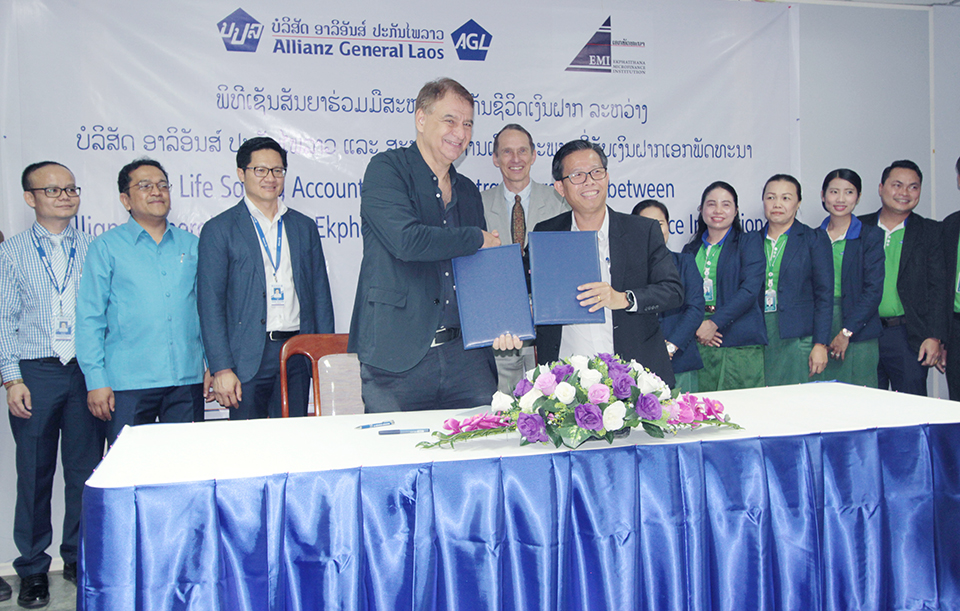 ວັນທີ 16 ມັງກອນຜ່ານມາ, ບໍລິສັດອາລິອັນສ໌ປະກັນໄພລາວບໍລິສັດປະກັນໄພແຫ່ງທຳອິດໃນ ສປປ ລາວ ໄດ້ຈັດພິທີລົງນາມເຊັນສັນຍາກັບສະຖາບັນການເງິນຈຸລະພາບທີ່ຮັບເງິນຝາກເອກພັດທະນາເພື່ອຮ່ວມມືສະໜອງປະກັນຊີວິດເງິນ