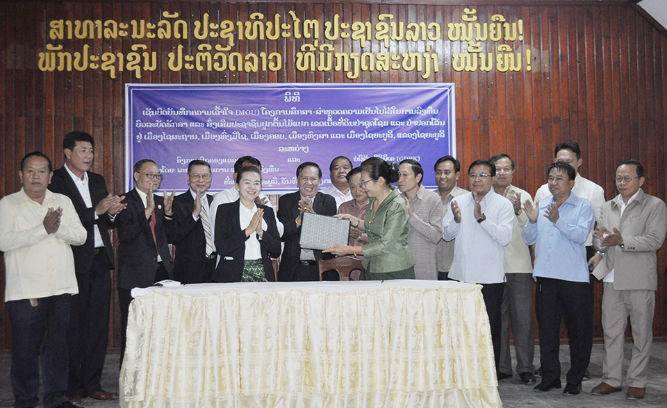 ໃນວັນທີ 14 ມັງກອນ 2020 ທີ່ພະແນກແຜນການ ແລະການລົງທຶນ ແຂວງໄຊຍະບູລີ ໄດ້ຈັດພິທີເຊັນບົດບັນທຶກຄວາມເຂົ້າໃຈ (MOU) ໂຄງການສຶກສາ ແລະສໍາຫຼວດຄວາມເປັນໄປໄດ້ໃນການລົງທຶນບົວລະບັດຮັກສາສົ່ງເສີມປະຊາຊົນປູກຕົ້ນໄມ້ແປກໃນເຂດເນື້ອທີ່ດິນປ່າຊຸດໂຊມ,