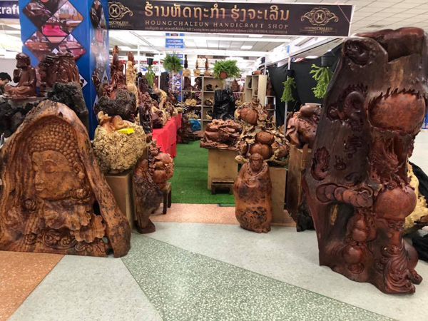 ກອງແຊງແກະສະຫຼັກໄມ້ສືມືລາວຕັ້ງເປົ້າຍອດຂາຍສິນຄ້າໃນງານວາງສະແດງຜະລິດຕະພັນໄມ້ລາວຄັ້ງທີ 5 ປະຈຳປີ 2019 ໄວ້ຢ່າງຕໍ່າ 50% ຂອງຈຳນວນສິນຄ້າທັງໝົດທີ່ນຳເຂົ້າຮ່ວມງານຂະນະທີ່ 5-6 ວັນຜ່ານມາແມ່ນໃກ້ຈະເຖິງແຜນແລ້ວໂດຍພໍ່ແມ່ປະຊາຊົນທີ່ທ່ຽວຊົມງານໃຫ້ຄວາມສົນໃຈຂອງໂຮງ ງານເປັນພິເສດຍ້ອນຄວາມງາມຂອງສິນບວກໃສ່ລາຄາກໍສົມເຫັດສົມຜົນ.