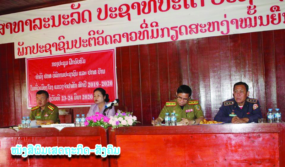 ວັນທີ 23-24 ມີນາ ຜ່ານມາ ທີ່ສະໂມສອນຫ້ອງການກຸ່ມກະດັນເມືອງໂຂງ ແຂວງຈຳປາສັກ ໄດ້ມີກອງປະຊຸມຝຶກອົບຮົມກຳລັງ ປກສ ບໍລິການປະຊາຊົນ ແລະປກສ ບ້ານໃນທົ່ວເມືອງຂຶ້ນຢ່າງເປັນທາງການ;